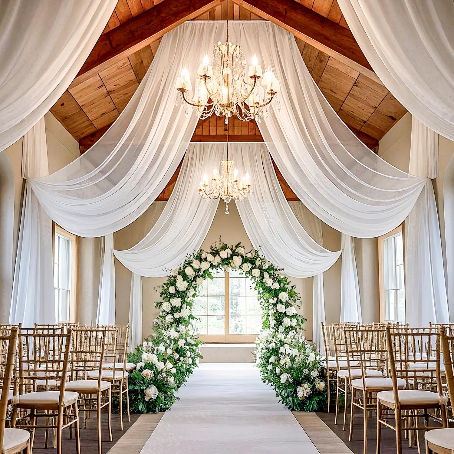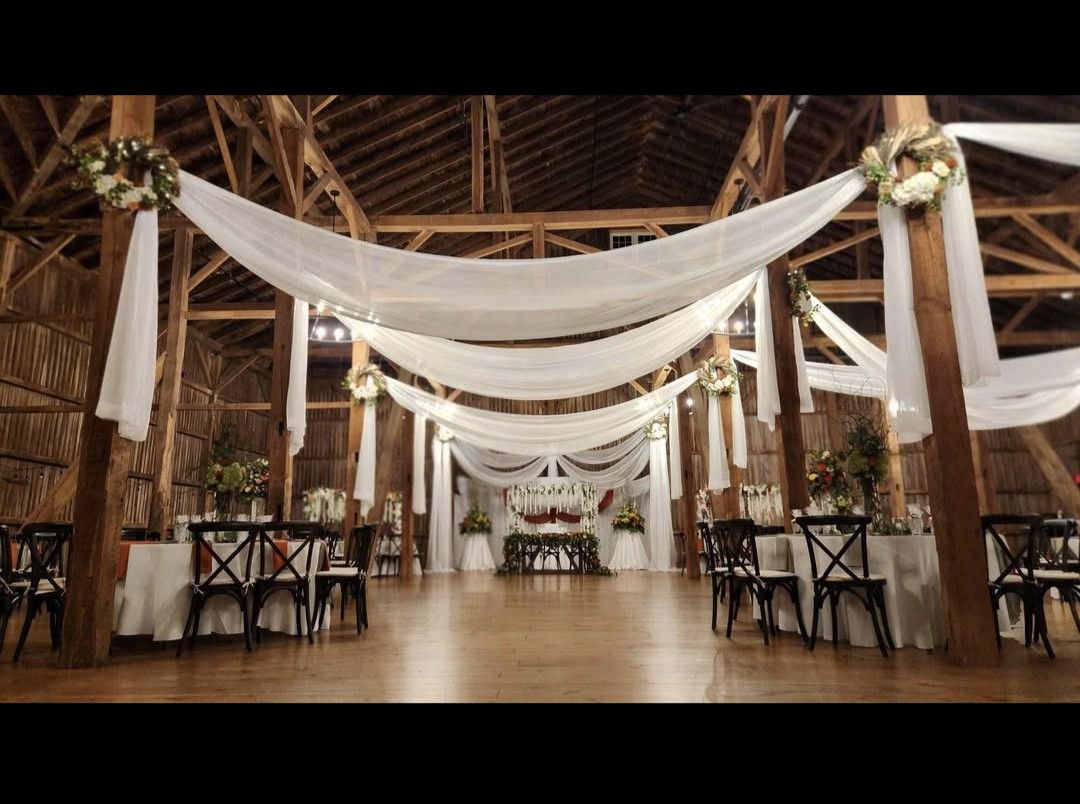 WHITE CHIFFON CEILING DRAPING G-40′
